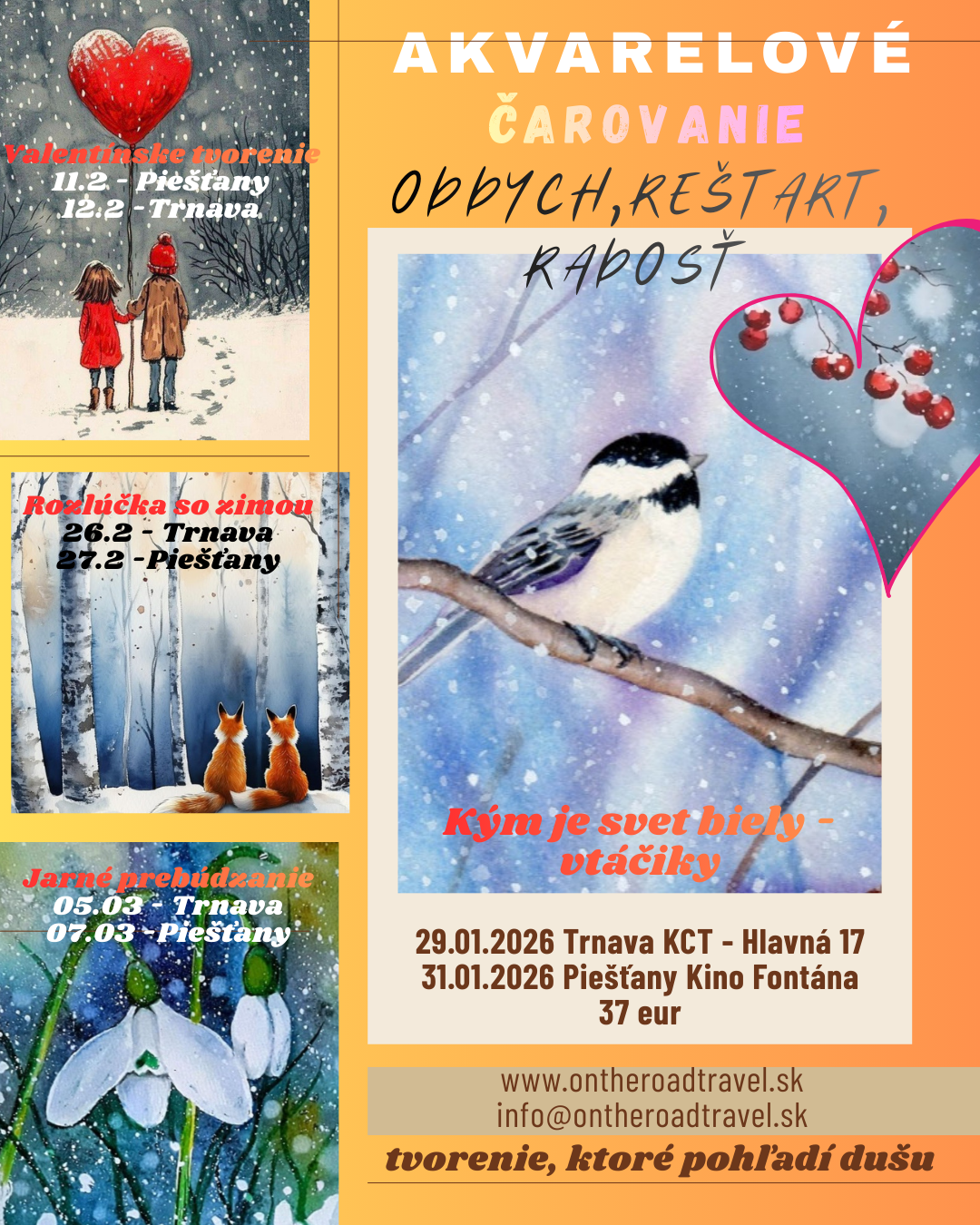 Naučíme sa základy vybraných akvarelových techník, oddýchneme si a dovolíme si byť chvíľu len tu a teraz.