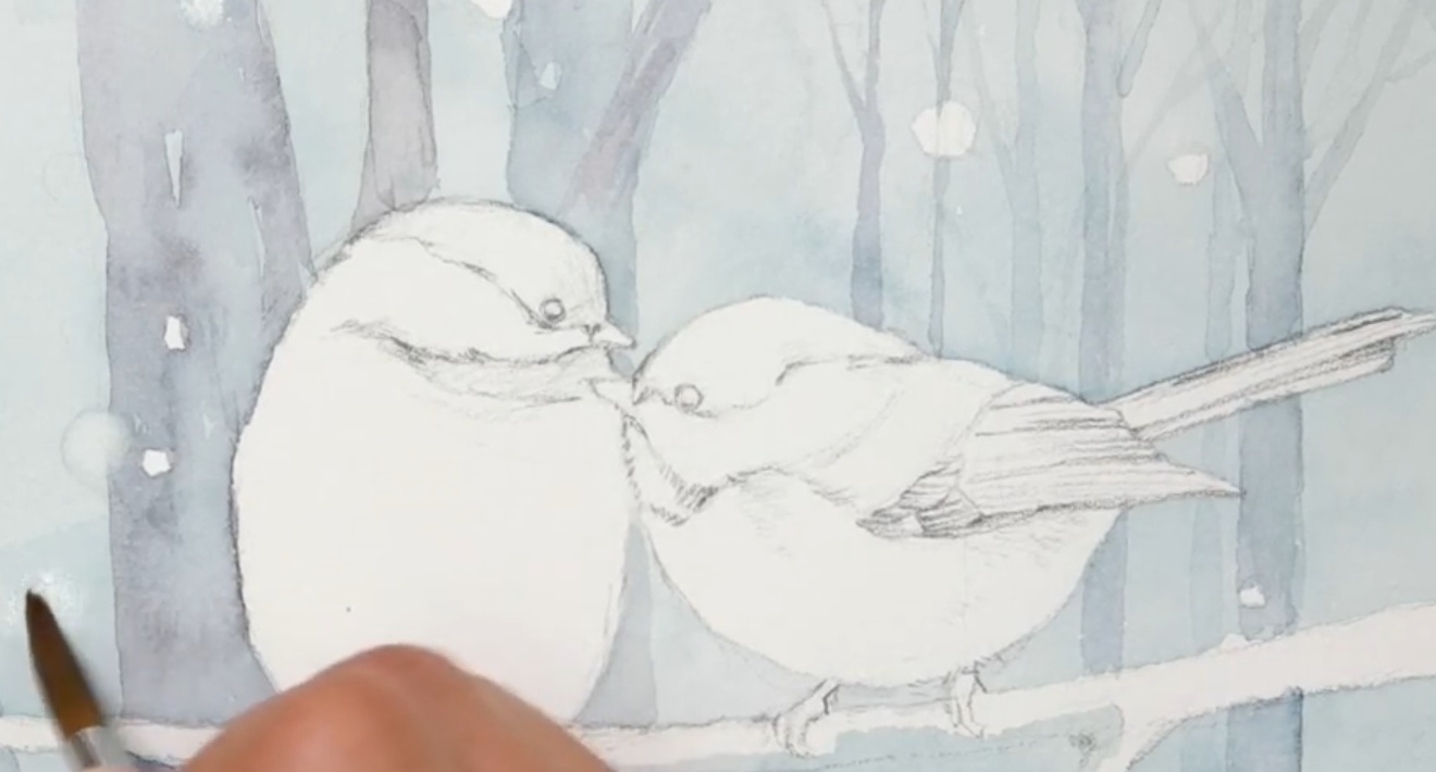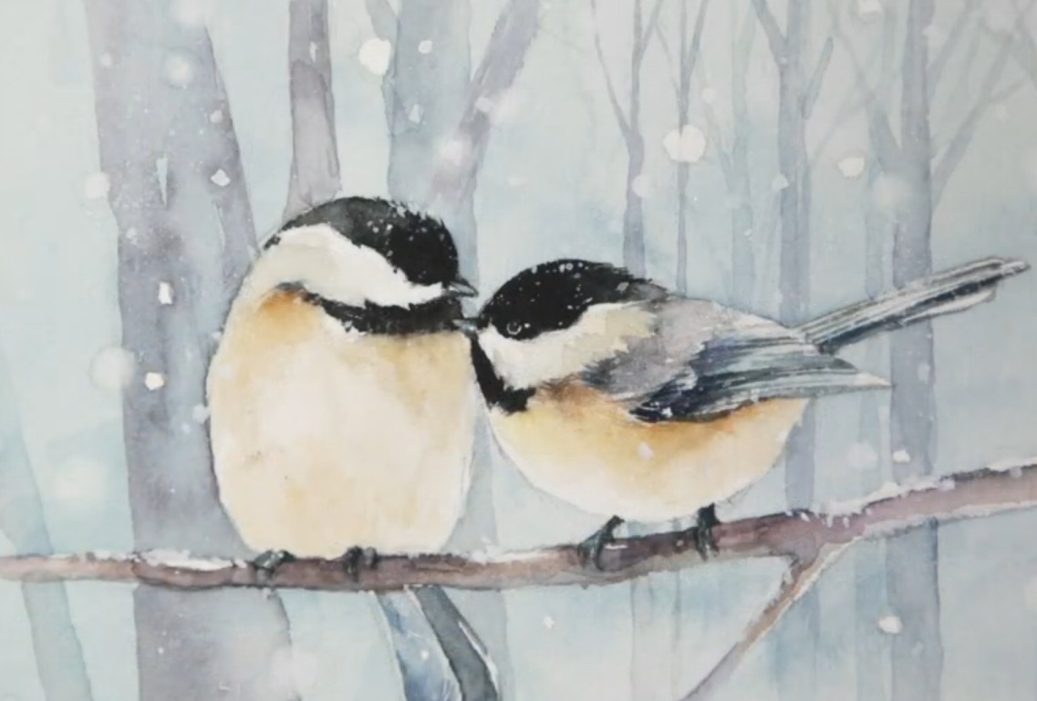 - kresliť a maľovať zimné vtáčiky v zasneženej krajine