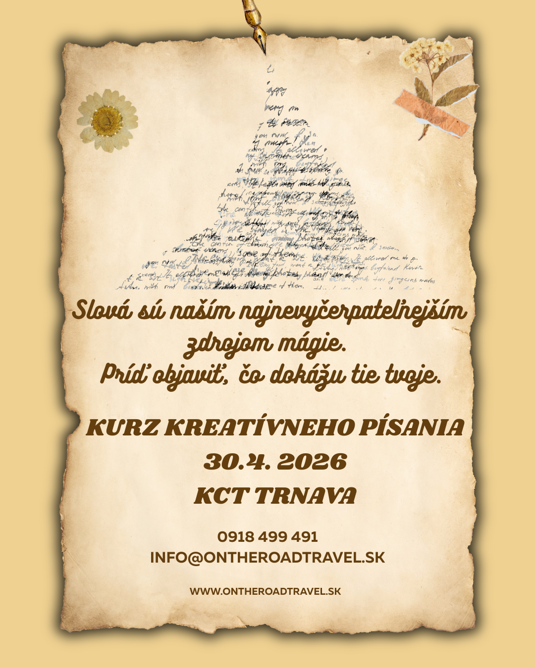 Workshop plný nápadov, jazykových hier a aha-momentov, kde texty vznikajú priamo na mieste a slová začnú dávať nový zmysel. V bezpečnej a podporujúcej atmosfére sa pracuje s krátkymi cvičeniami, ktoré rozprúdia fantáziu, odbúrajú strach z prázdnej strany a pomôžu nájsť vlastný štýl písania. Vhodné pre začiatočníkov aj pokročilých, pre všetkých, ktorí chcú písať uvoľnenejšie, hravejšie a s väčšou istotou.