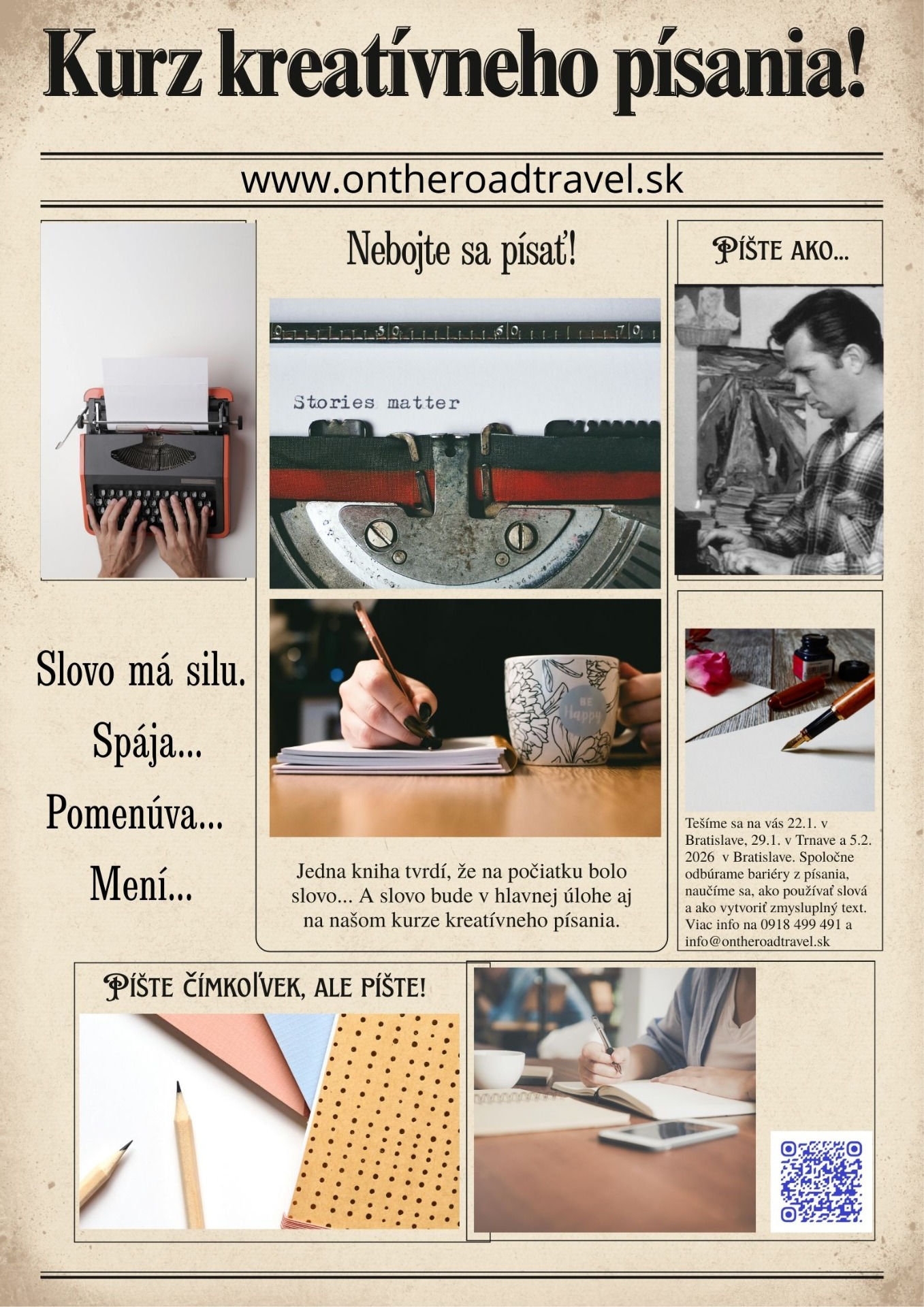 Cieľom kurzu je prebudiť radosť z písania, ukázať nové možnosti a dodať odvahu tvoriť slobodne a autenticky. Tešíme sa na všetkých, ktorí chcú svoje nápady premeniť na živé a zaujímavé príbehy.