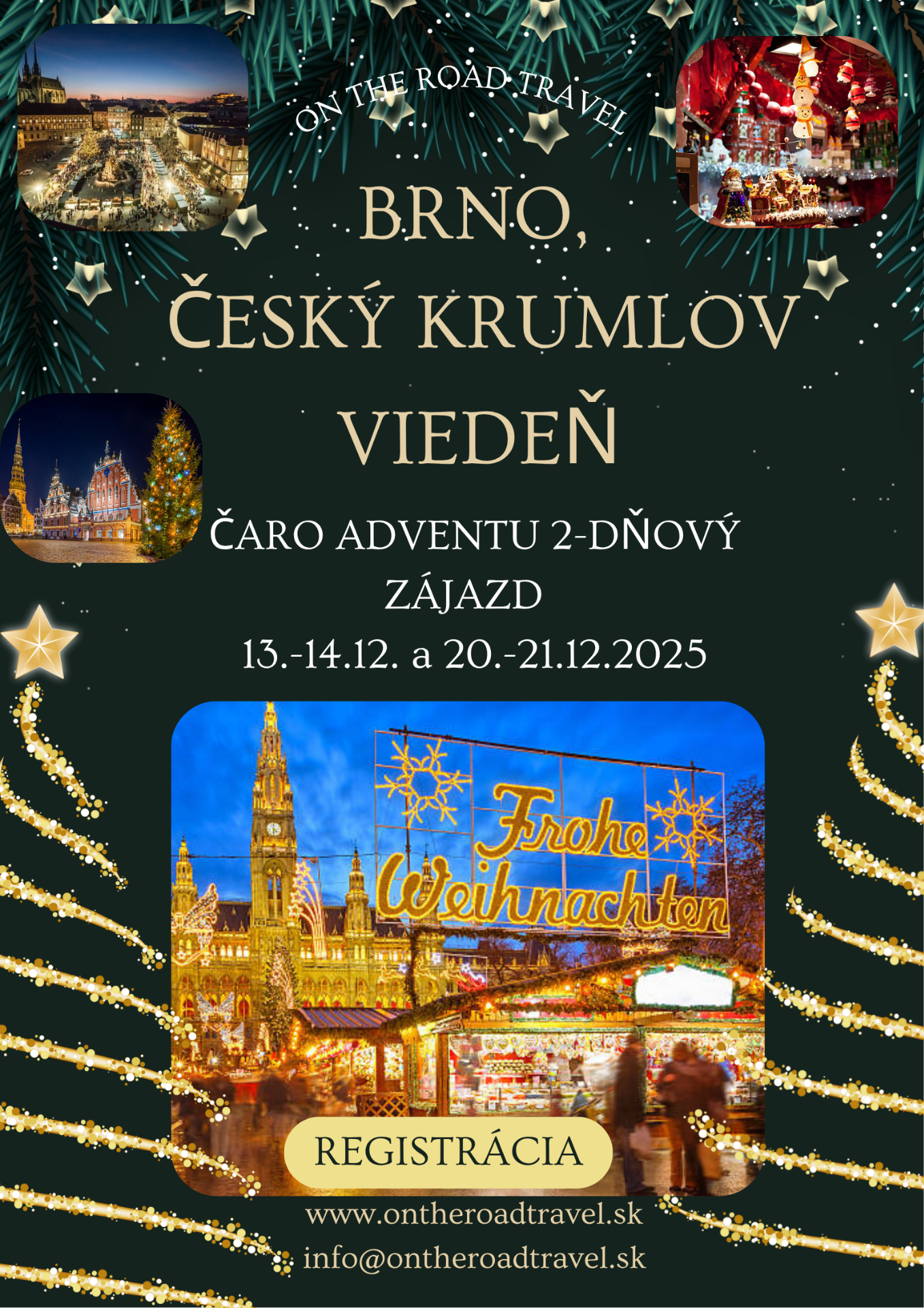Dva dni plné rozprávkovej atmosféry, vône punču a ligotavých svetiel. Vyrazte s nami na nezabudnuteľný vianočný zájazd, ktorý spojí to najkrajšie z troch adventných miest: historický Český Krumlov, sviatočne naladené Brno a elegantnú, pestro žiariacu Viedeň.